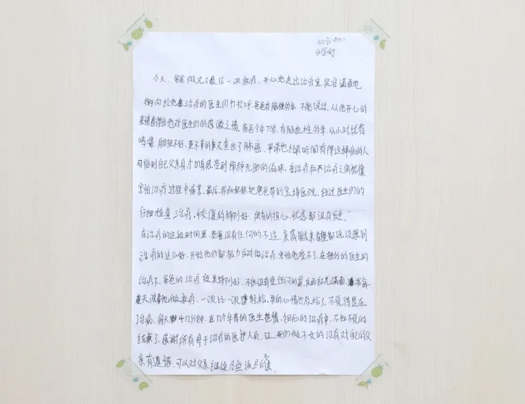 文/放疗中心患者家属的感谢信