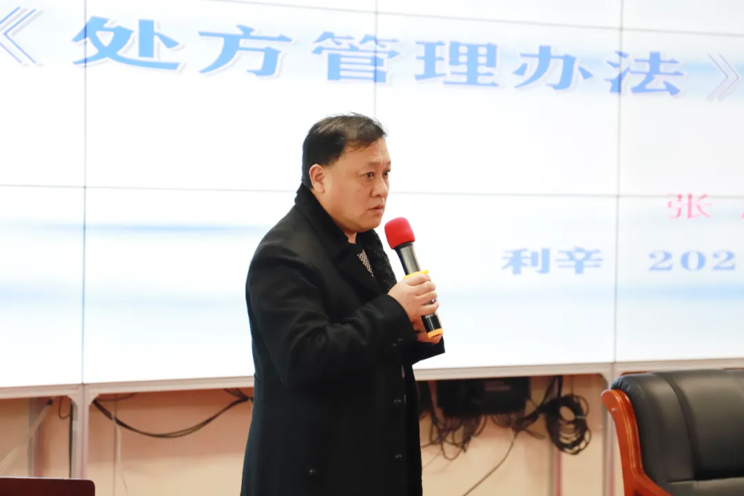副院长、妇产科主任左绪磊教授主持了会议,张庆主任现场讲授了《麻精药品法律法规、规章制度》、《处方管理办法等》、《麻醉药品临床应用指导原则》等内容,从医疗机构麻醉药品、精神药品管理,临床应用管理及癌痛规范化疼痛治疗等内容进行深入浅出的解读。对精麻药品的釆购、储存与保管,以及麻精药品处方的开具、调剂、使用,还有癌痛三阶梯镇痛等内容进行了详细的讲解。