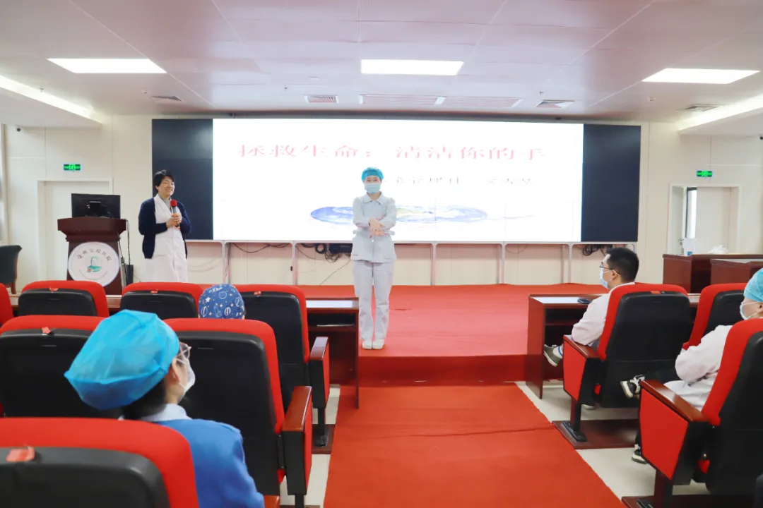 会上,医务部副主任郑华云、护理部副主任朱洪阳分别作了培训致辞,医院感染管理科副主任安雪琴阐述了本轮疫情情况,并对环境的清洁与消毒、消毒液的配制、防护用品的正确使用、医疗废物处置、手卫生规范、呼吸道职业暴露的处置等相关知识作了详细的讲解。培训采取了理论讲解、现场演示、模拟互动等多种形式相结合的方式进行。