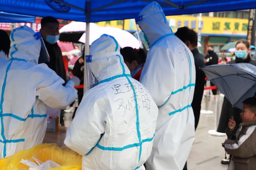 在最短的时间内,应急队集结完毕,备好防护物资,冒雨前行,奔赴和谐社区各核酸采样点开展工作。抵达采样点后,医护人员迅速投入到采样工作中,为抗击疫情筑起一道坚固防线。在利辛县第一轮区域核酸筛查中宝璋医院共采集七千余人。