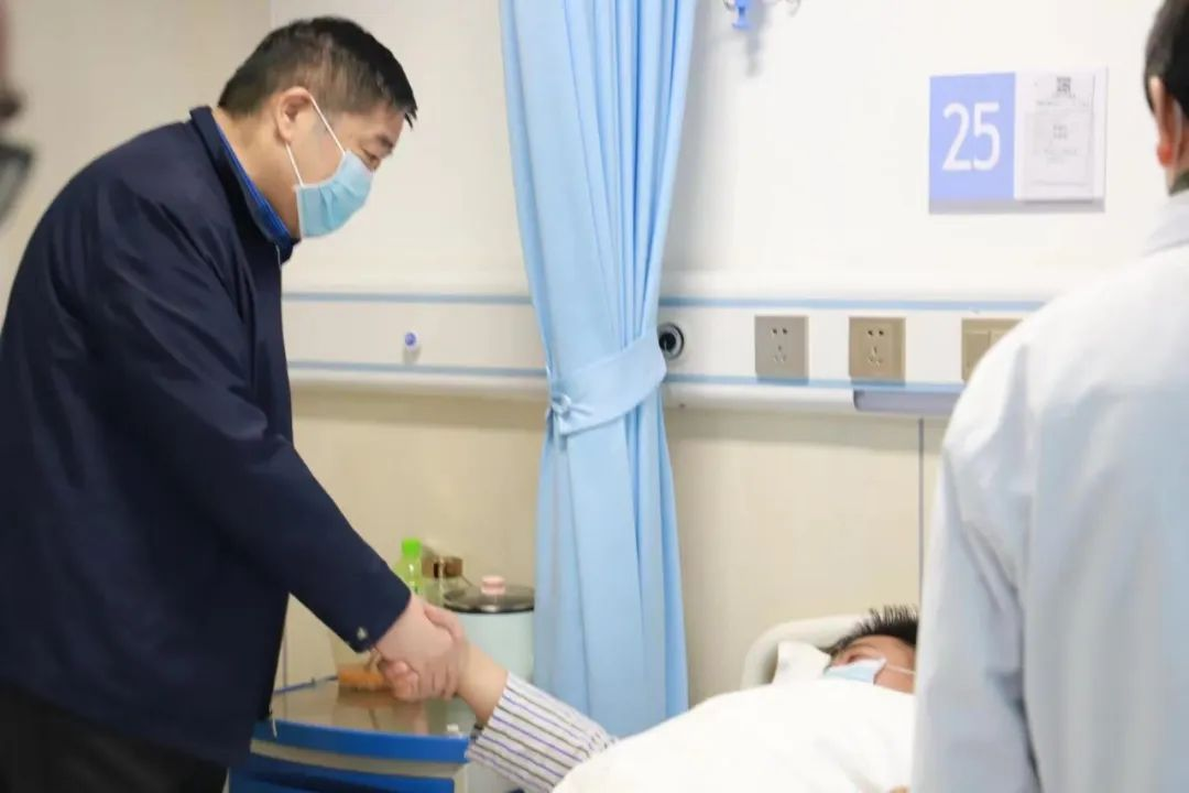 4月29日上午,亳州宝璋医院执行院长苏波、副院长陈齐鸣、王宜轩带领神经外科张立华主任、神经内科习予祥副主任、护理部朱洪阳主任携带水果、牛奶等慰问品来到病房,看望我院神经医学中心康复师赵医生。
